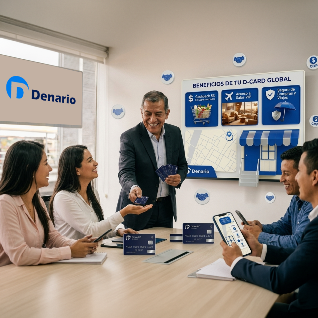 D-Card es la solución de pagos y financiamiento corporativo de Denario que permite a las empresas entregar recursos a sus colaboradores de forma digital, controlada y eficiente. A través de una tarjeta virtual respaldada por Visa, las compañías pueden habilitar diferentes modalidades de uso según su necesidad: crédito para colaboradores con descuento por nómina o asignación de recursos para beneficios, gastos empresariales o incentivos.